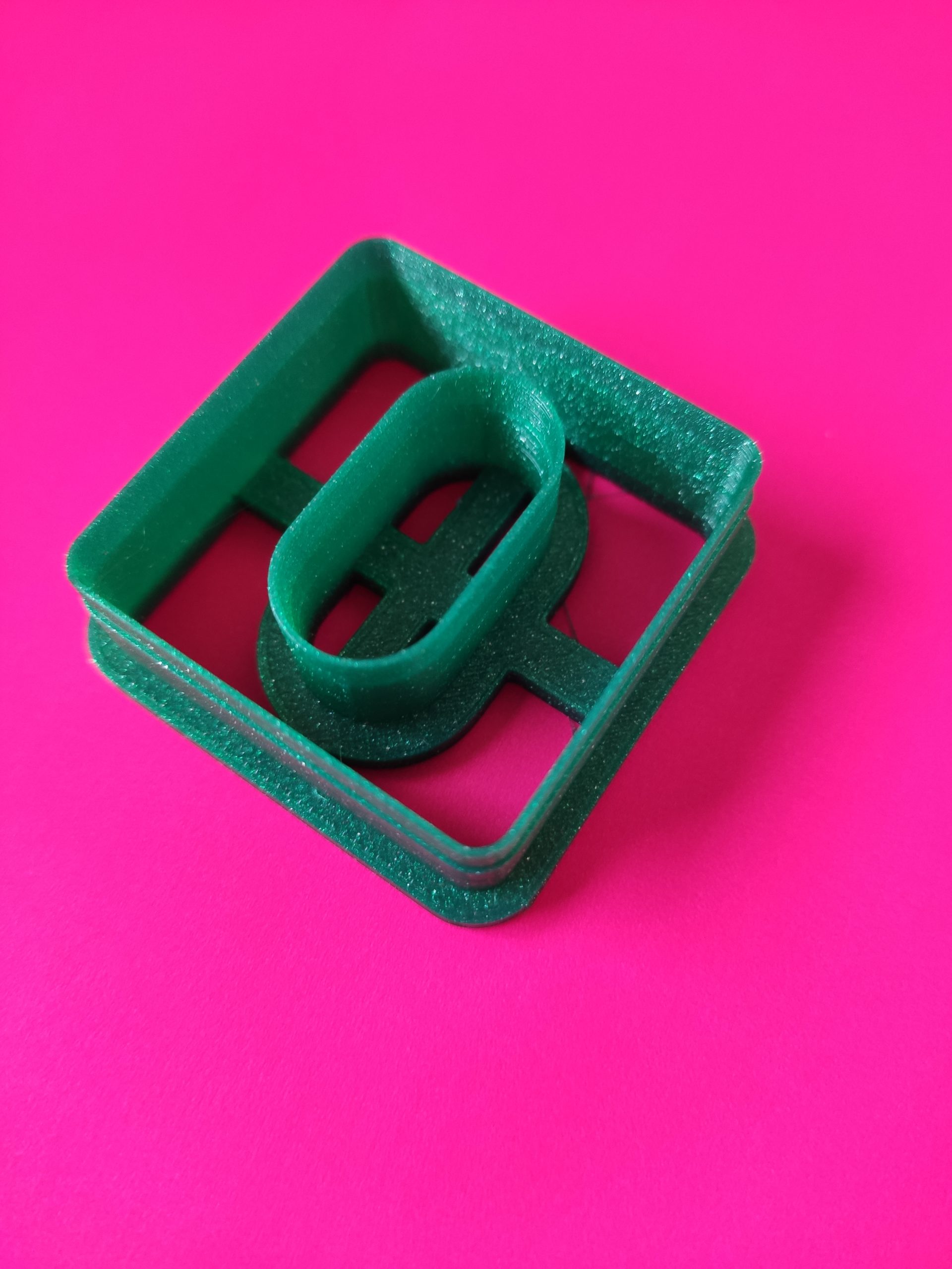 Cortador de arcilla polimérica en forma de cuadrado con bordes redondeados con centro cortado. Impreso en 3D. El color puede variar.
