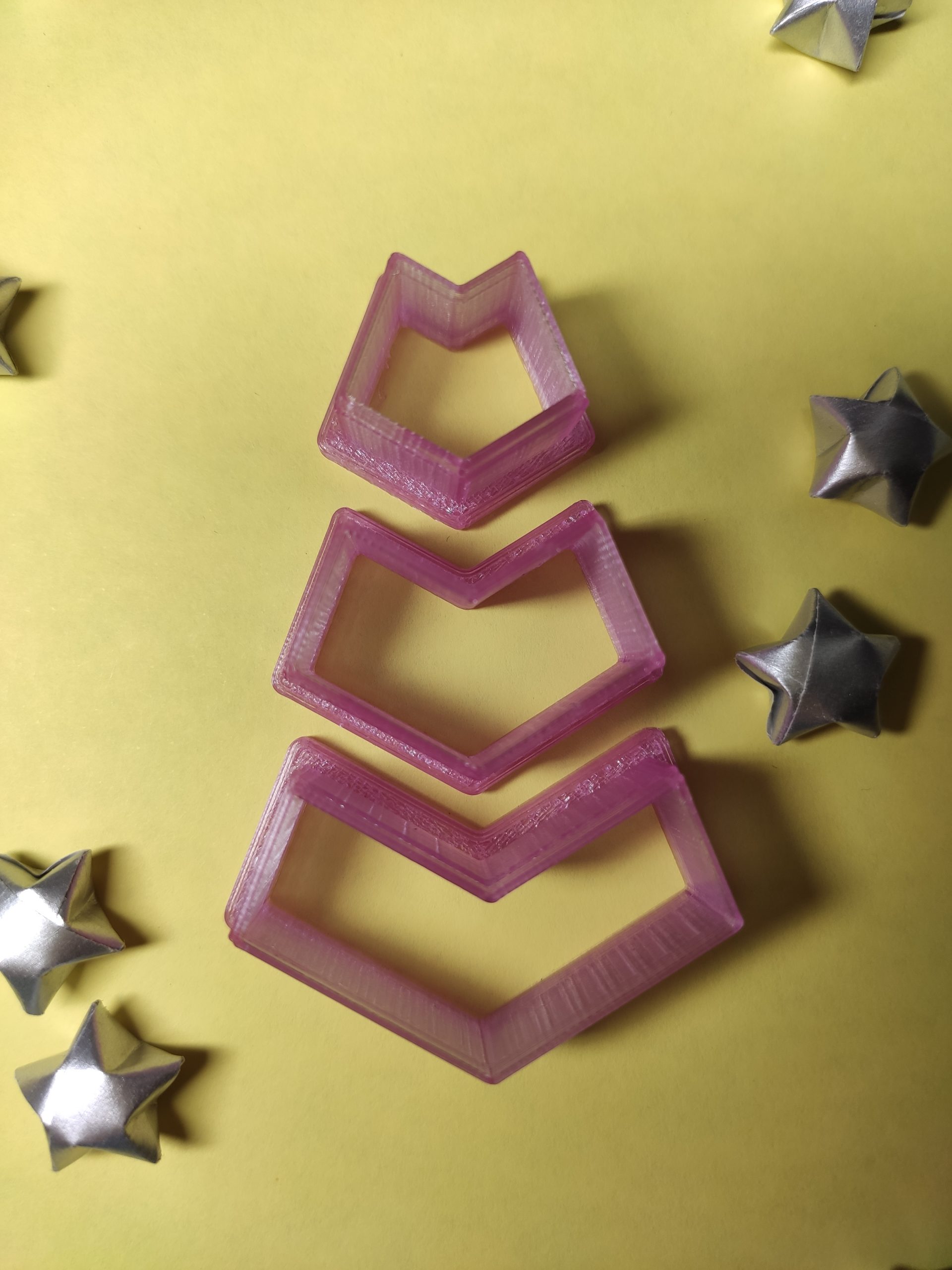 Cortador de arcilla polimérica en forma de flechas geométricas. Cada conjunto está compuesto por 3 flechas. Impreso en 3D. El color puede variar.