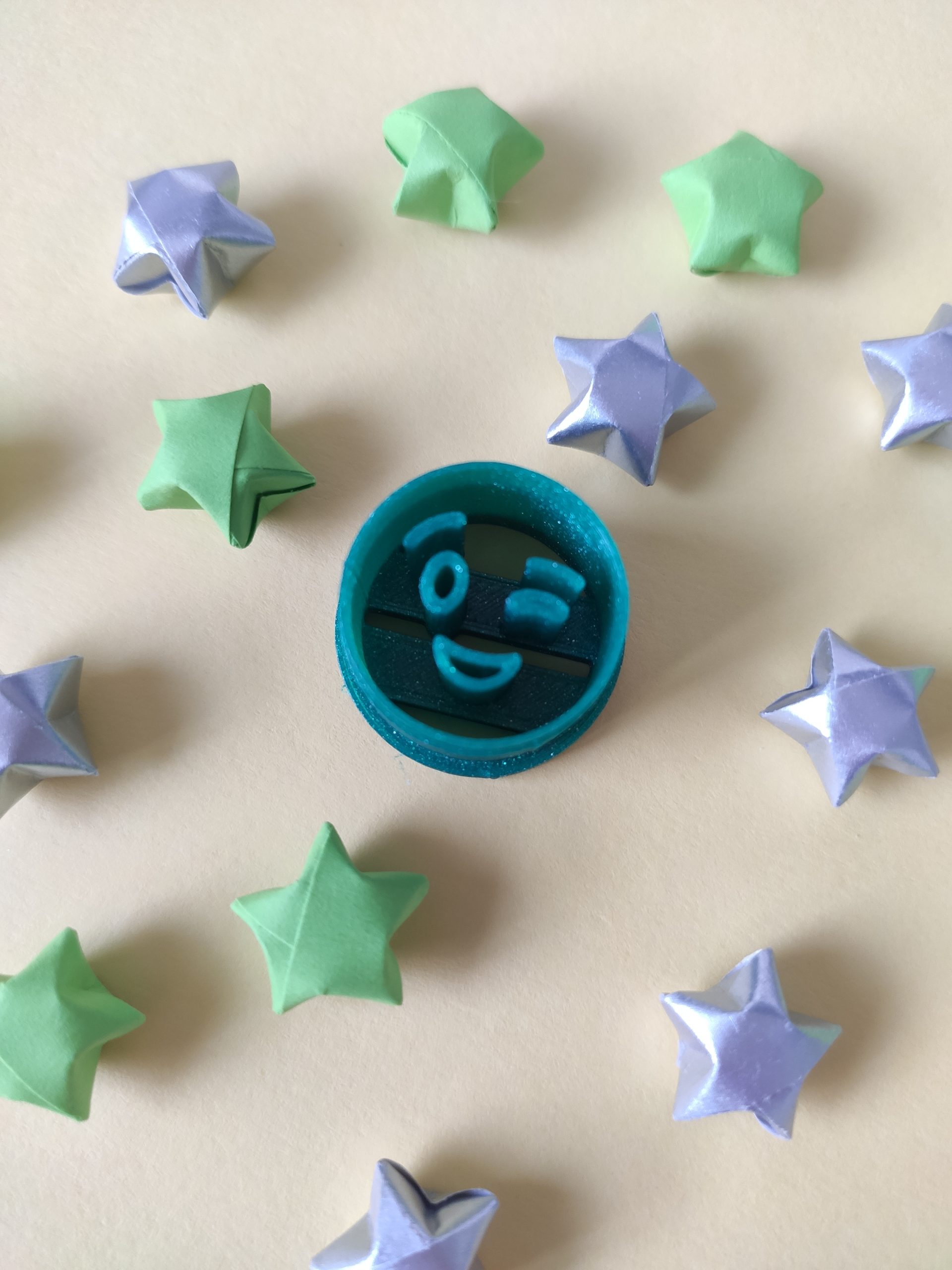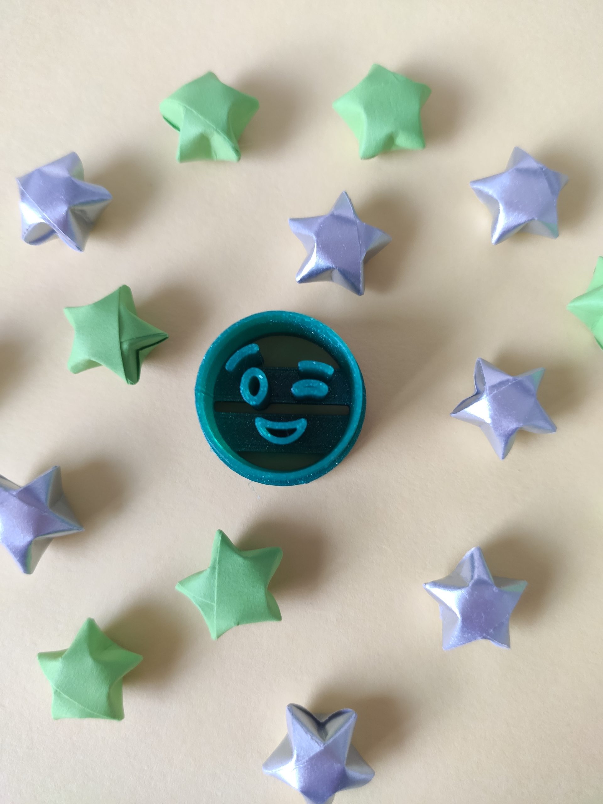 Cortador de arcilla polimérica en forma de emoticono guiño. Impreso en 3D. El color puede variar.