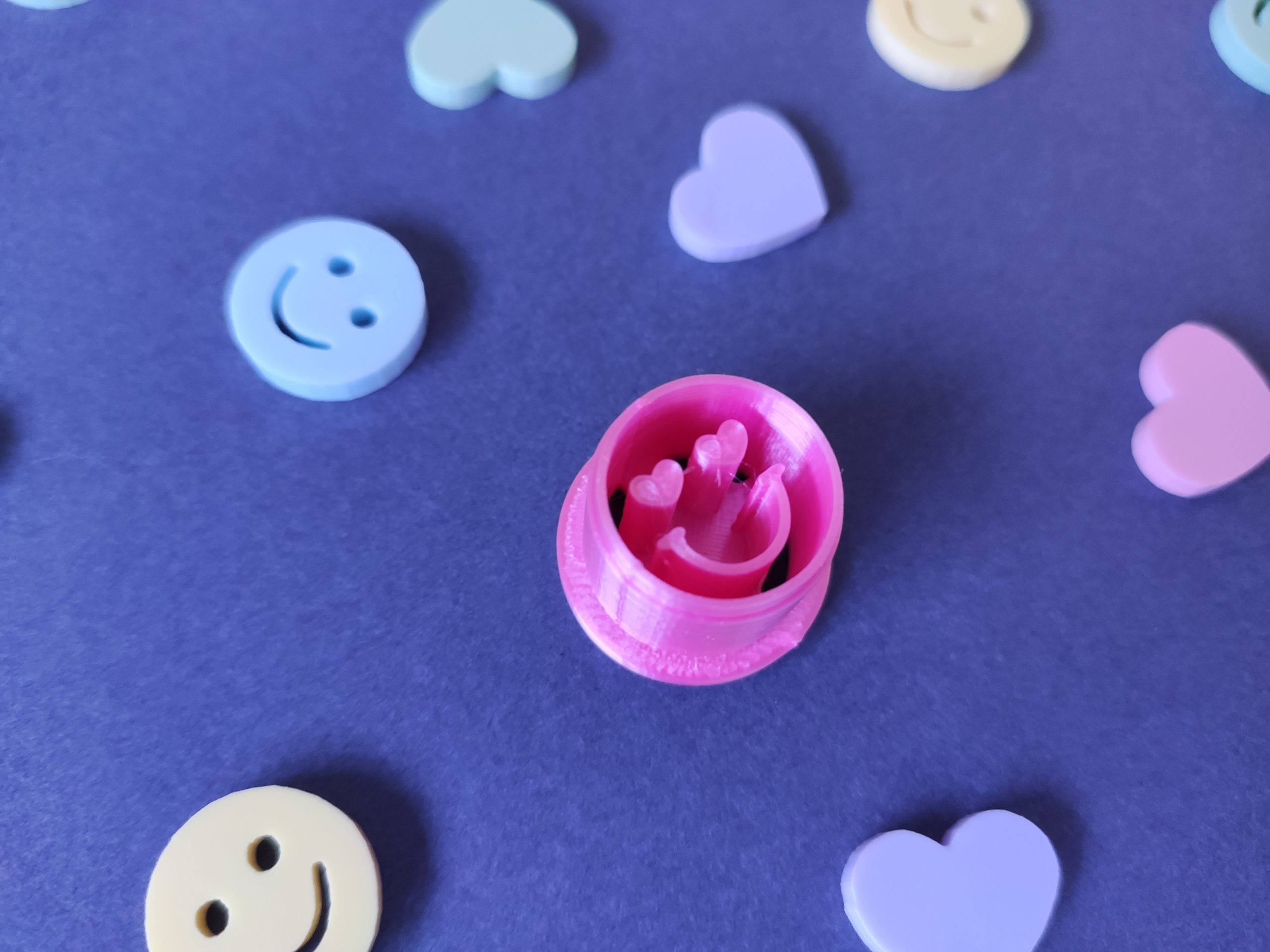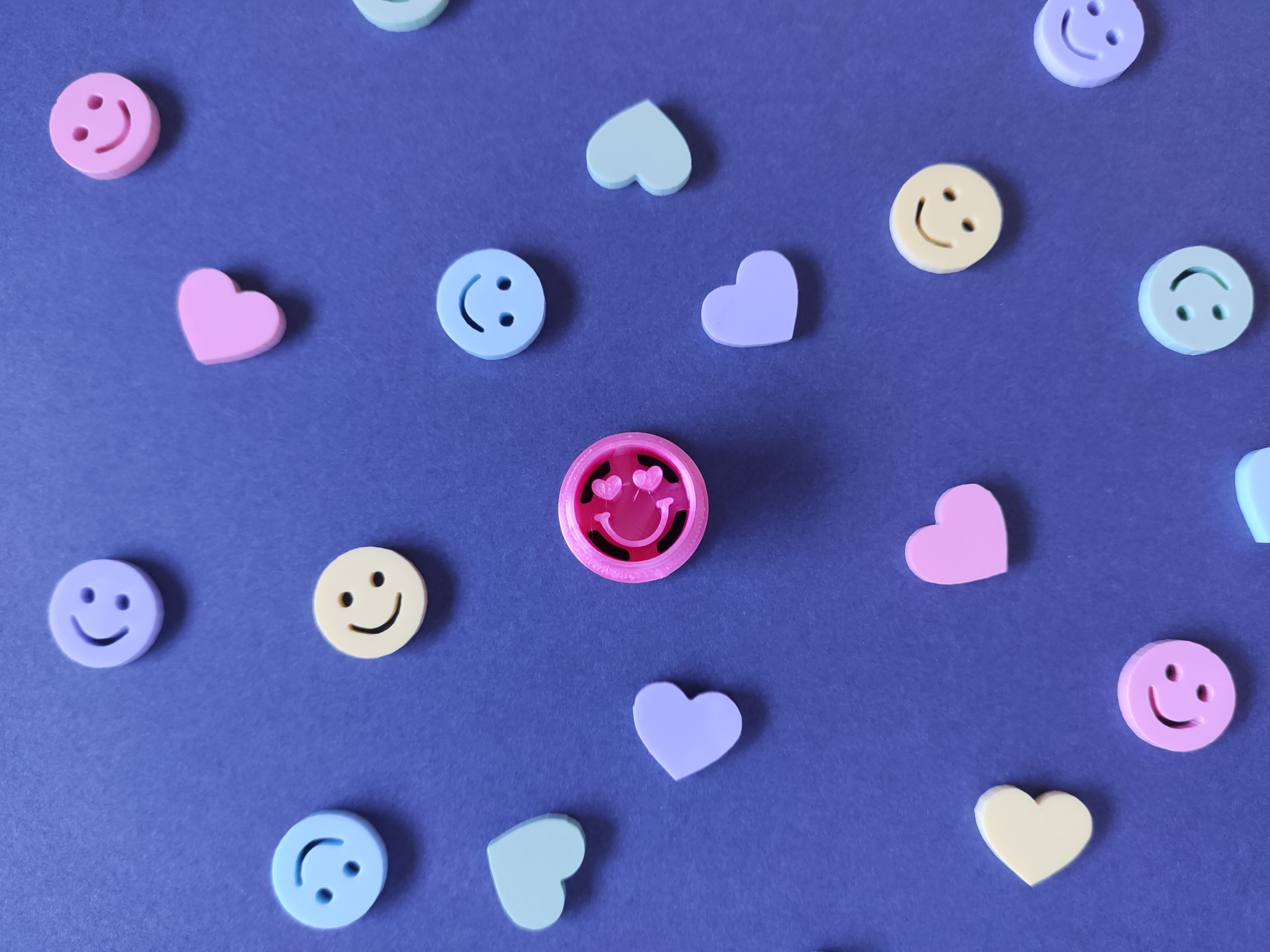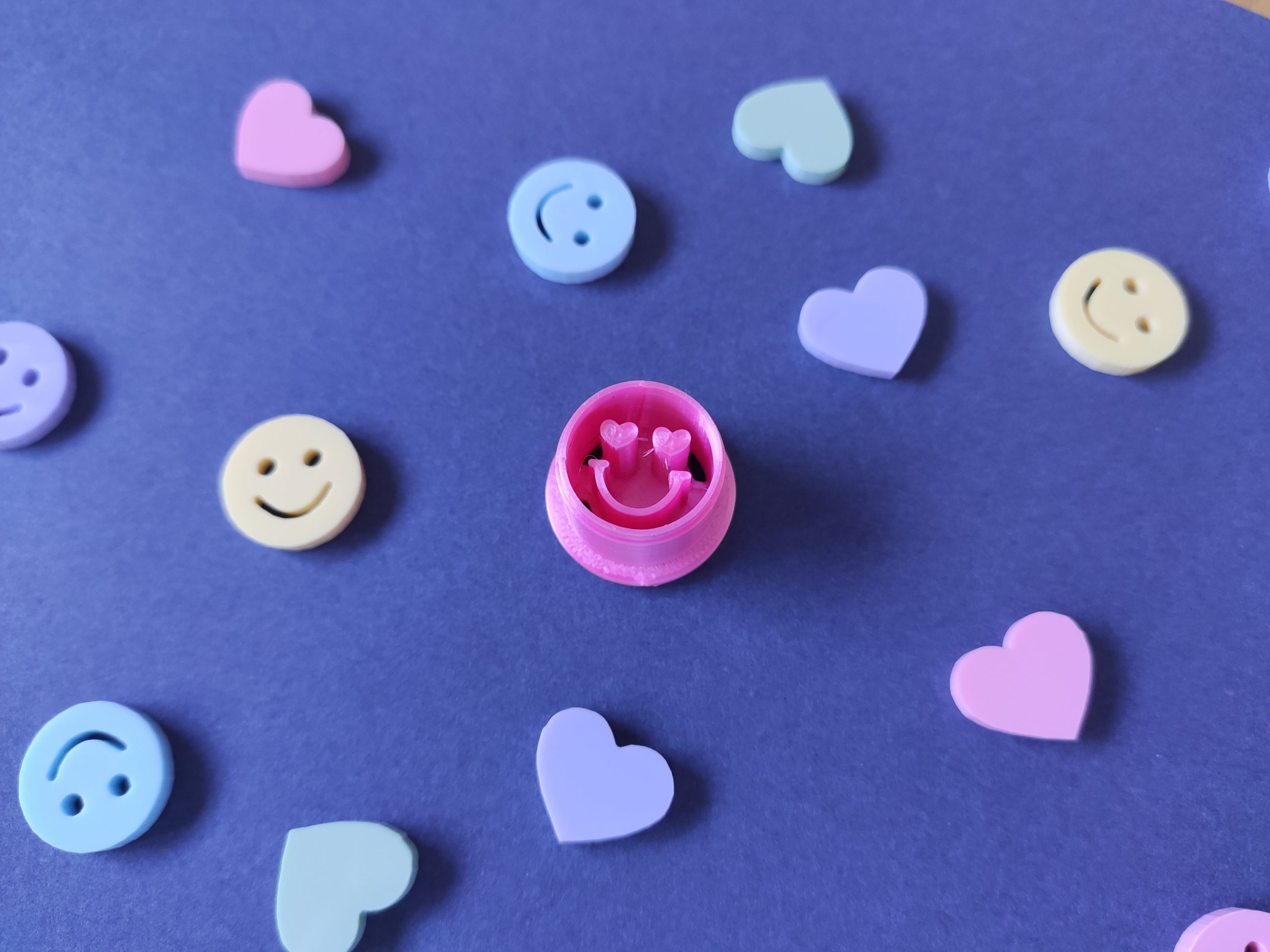 Cortador de arcilla polimérica en forma de emoticono con ojos de corazón. Impreso en 3D. El color puede variar.