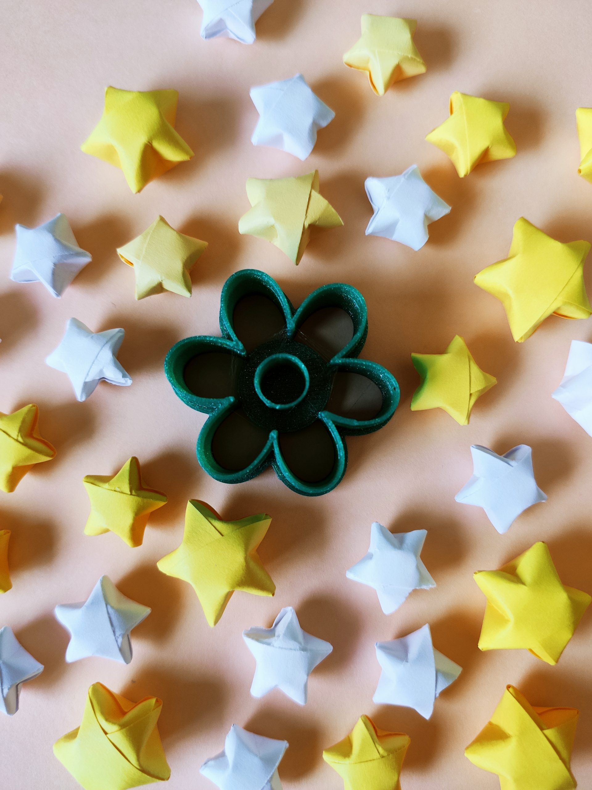Cortador de arcilla polimérica en forma de margarita II (el centro queda cortado). Impreso en 3D. El color puede variar.