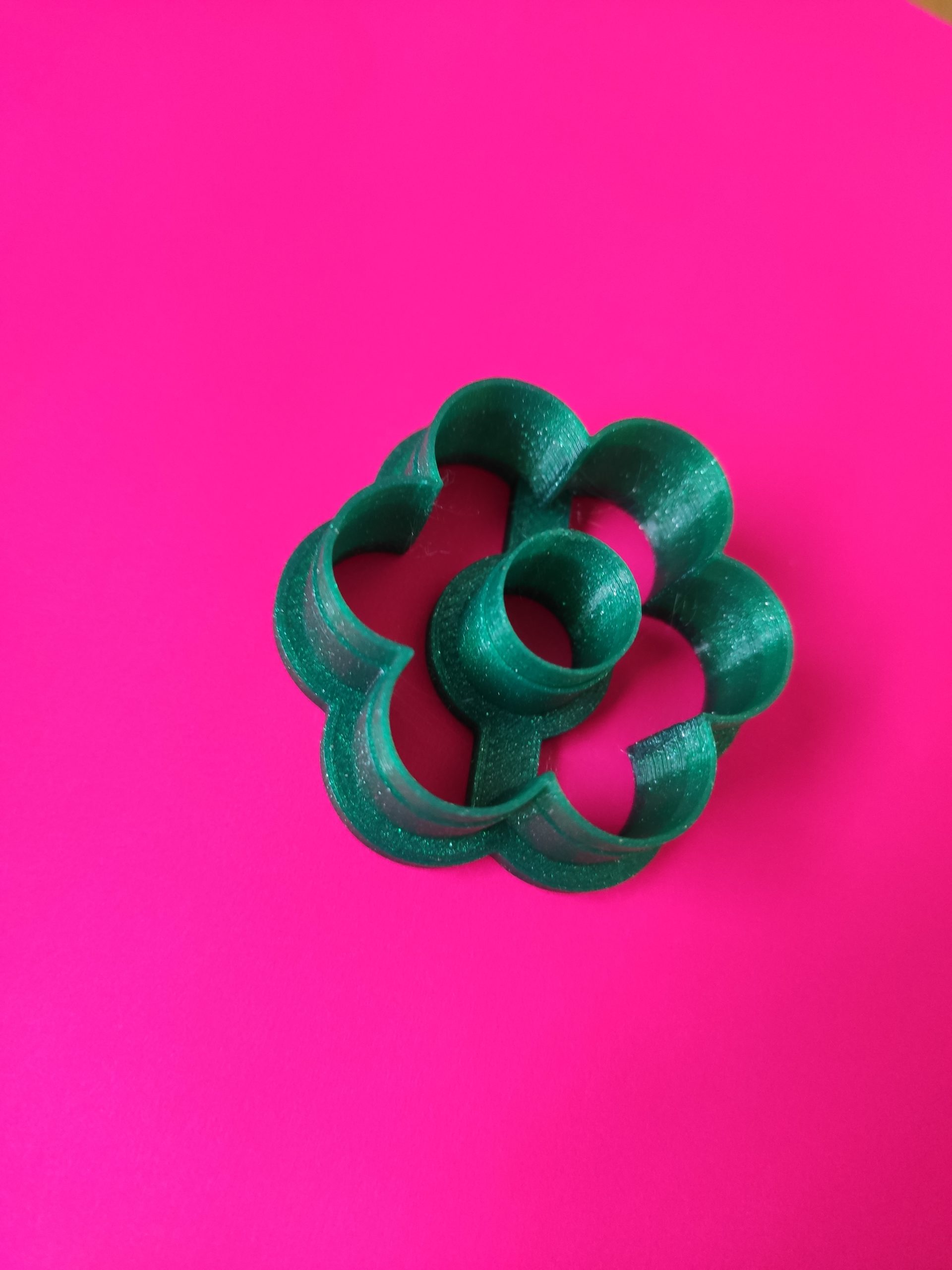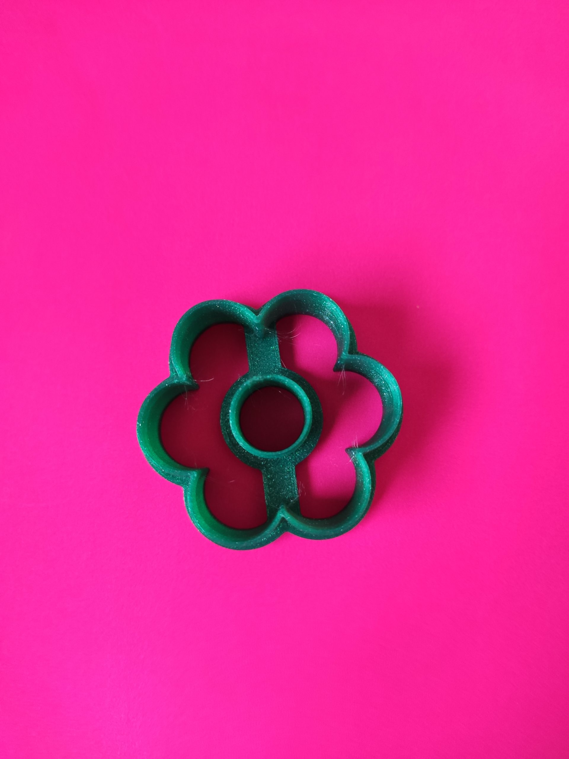 Cortador de arcilla polimérica en forma de margarita IV (el centro queda cortado). Impreso en 3D. El color puede variar.
