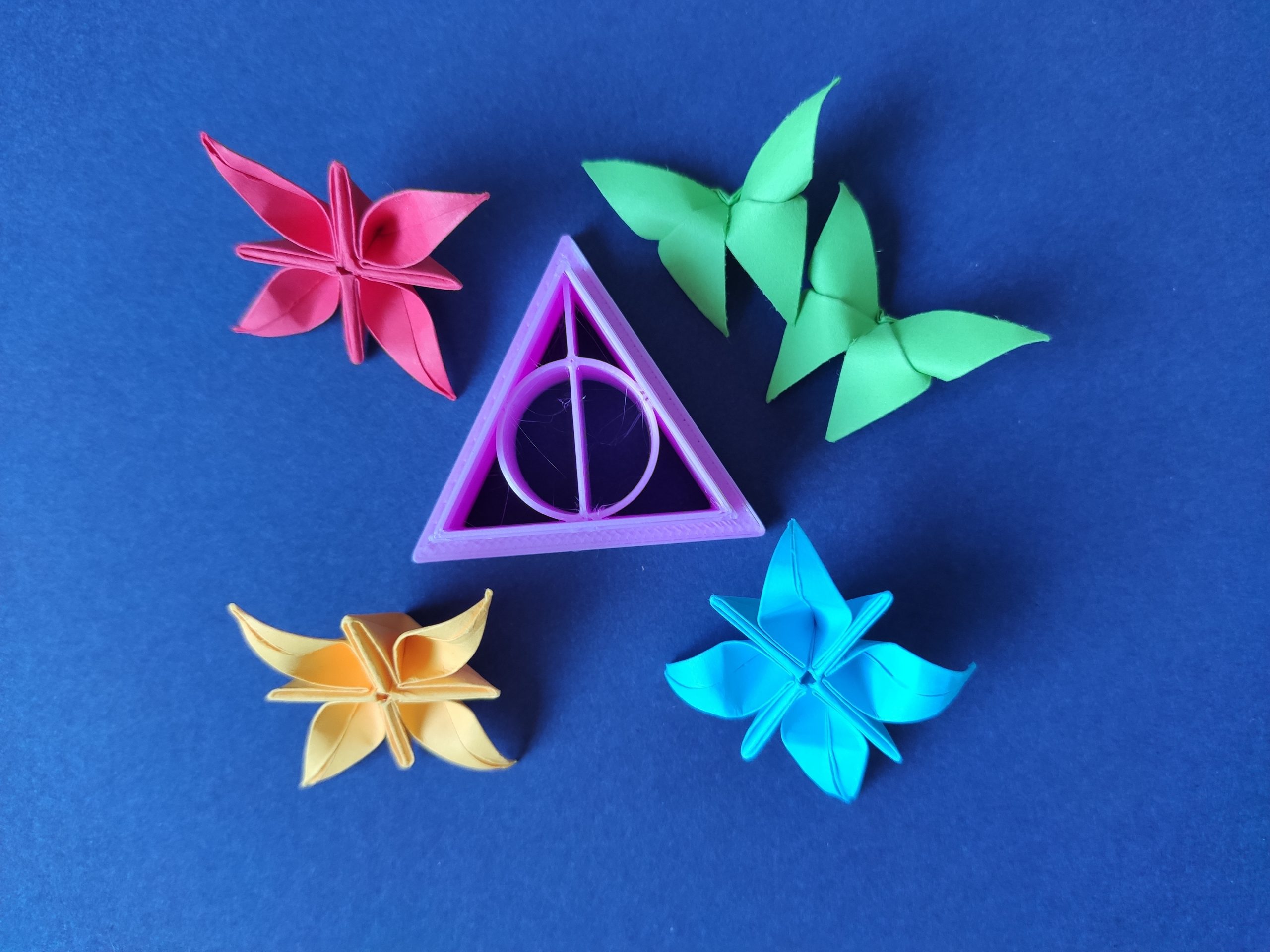 Cortador de arcilla polimérica en forma de reliquias de la muerte. Impreso en 3D. El color puede variar.