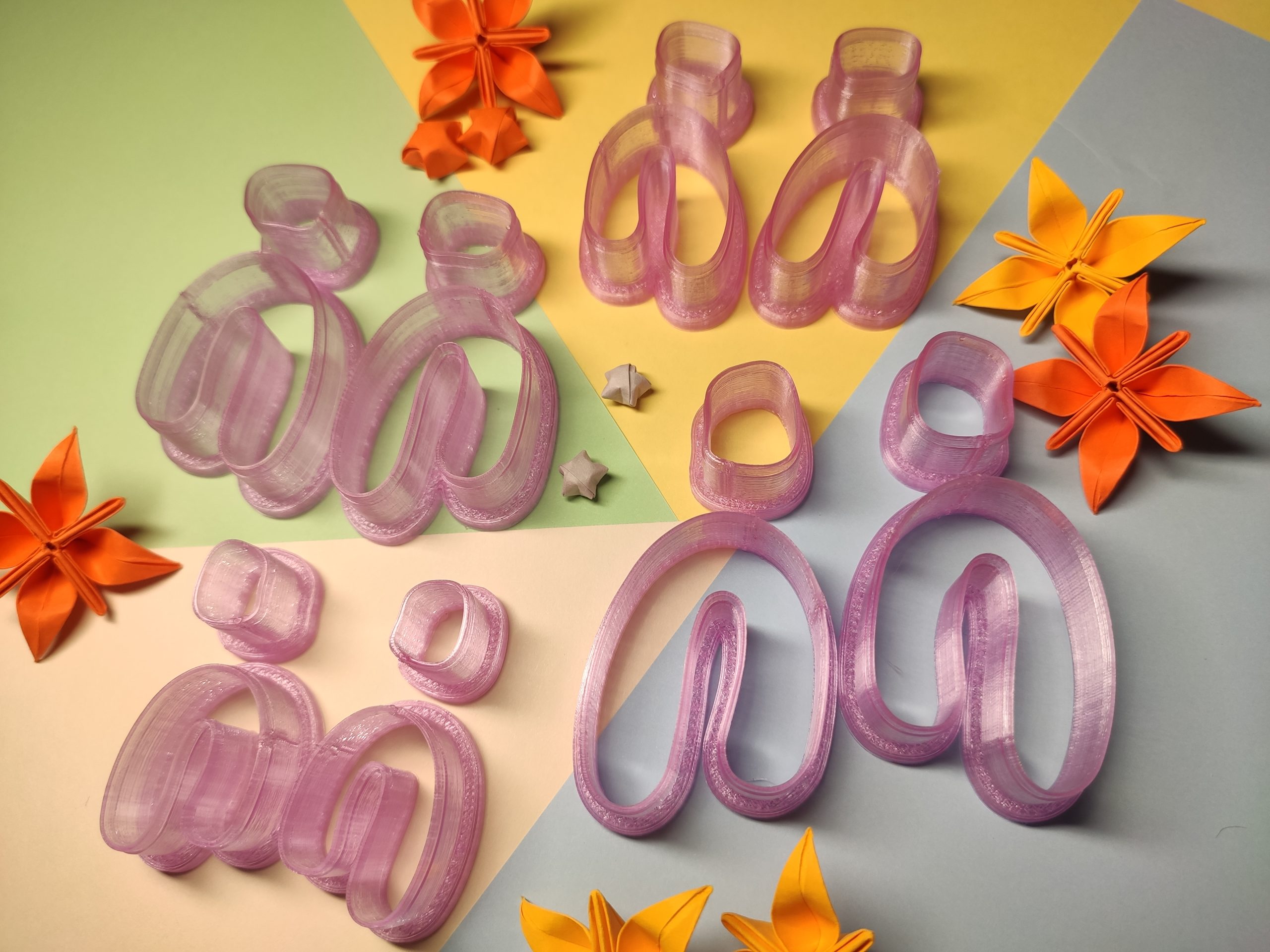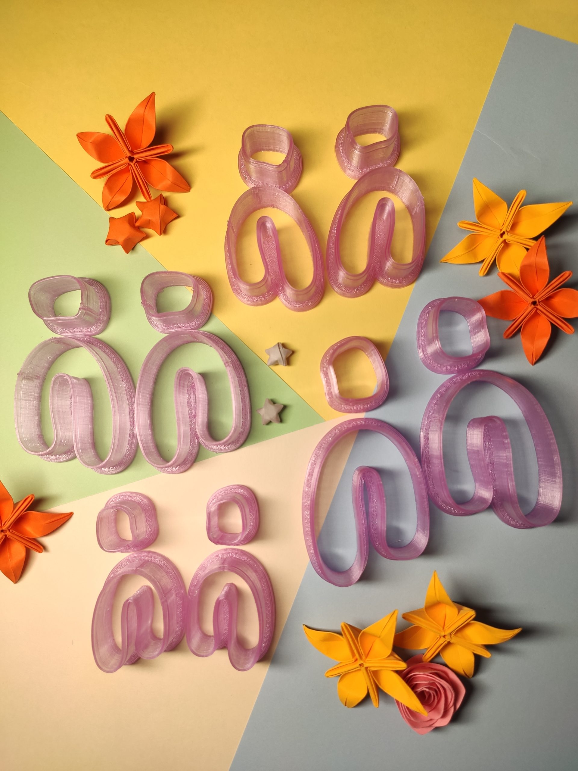 Cortador de arcilla polimérica en forma de conjunto de arcos asimétricos en espejo (un conjunto está compuesto por 2 arcos en espejo). Impreso en 3D. El color puede variar.