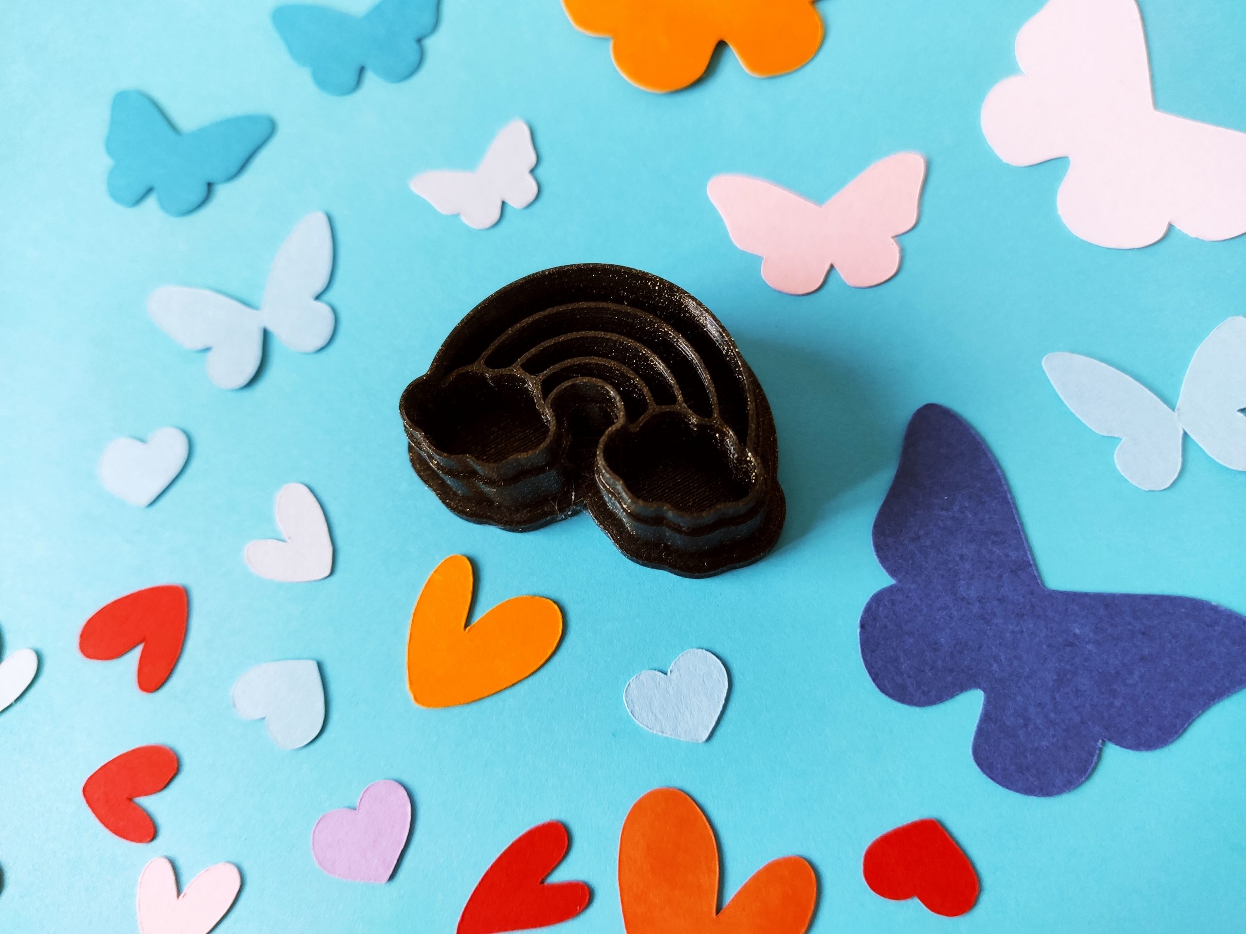 Cortador de arcilla polimérica en forma de arcoiris. Impreso en 3D. El color puede variar.