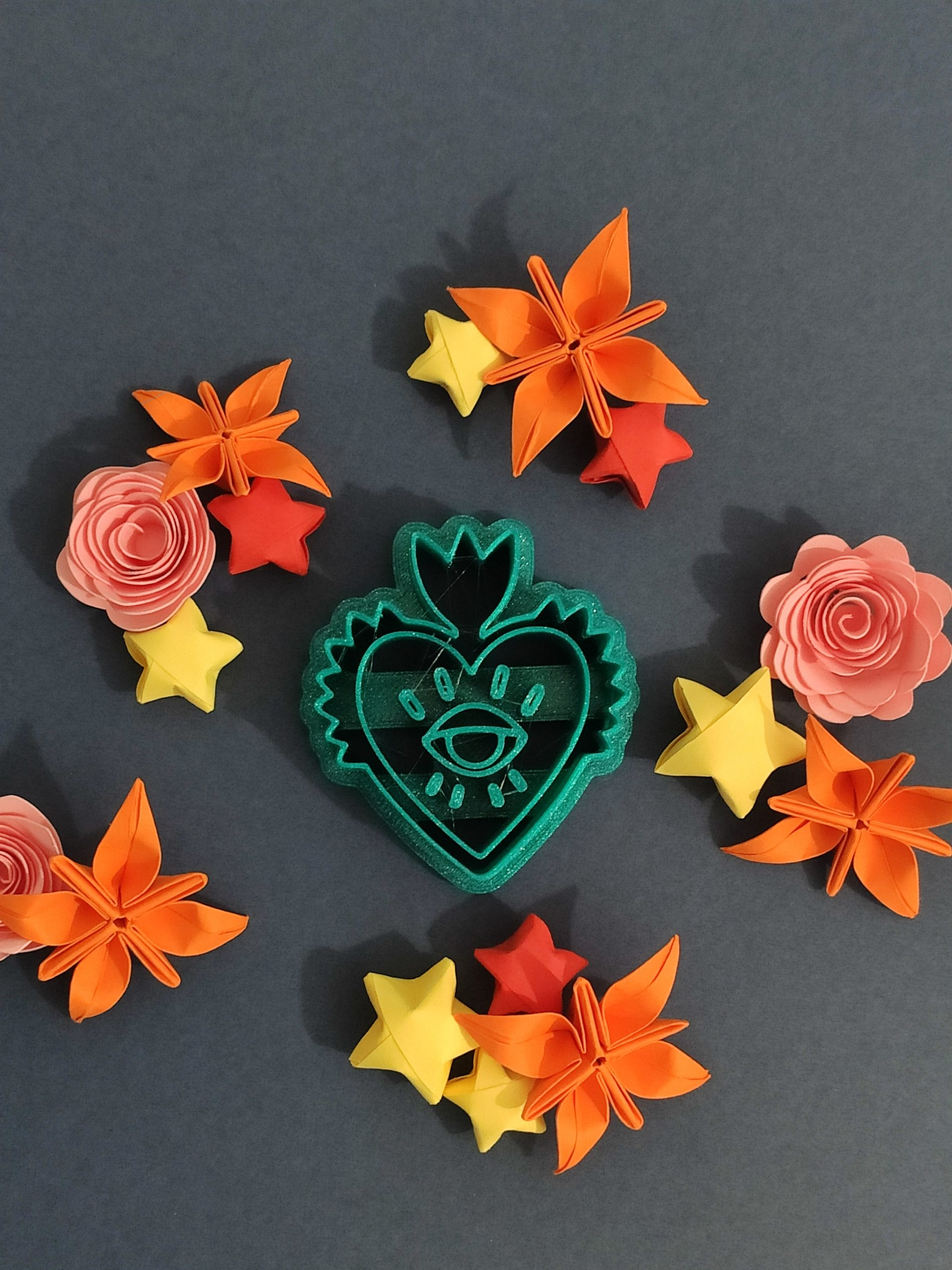Cortador de arcilla polimérica en forma de corazón mejicano con ojo. Impreso en 3D. El color puede variar.