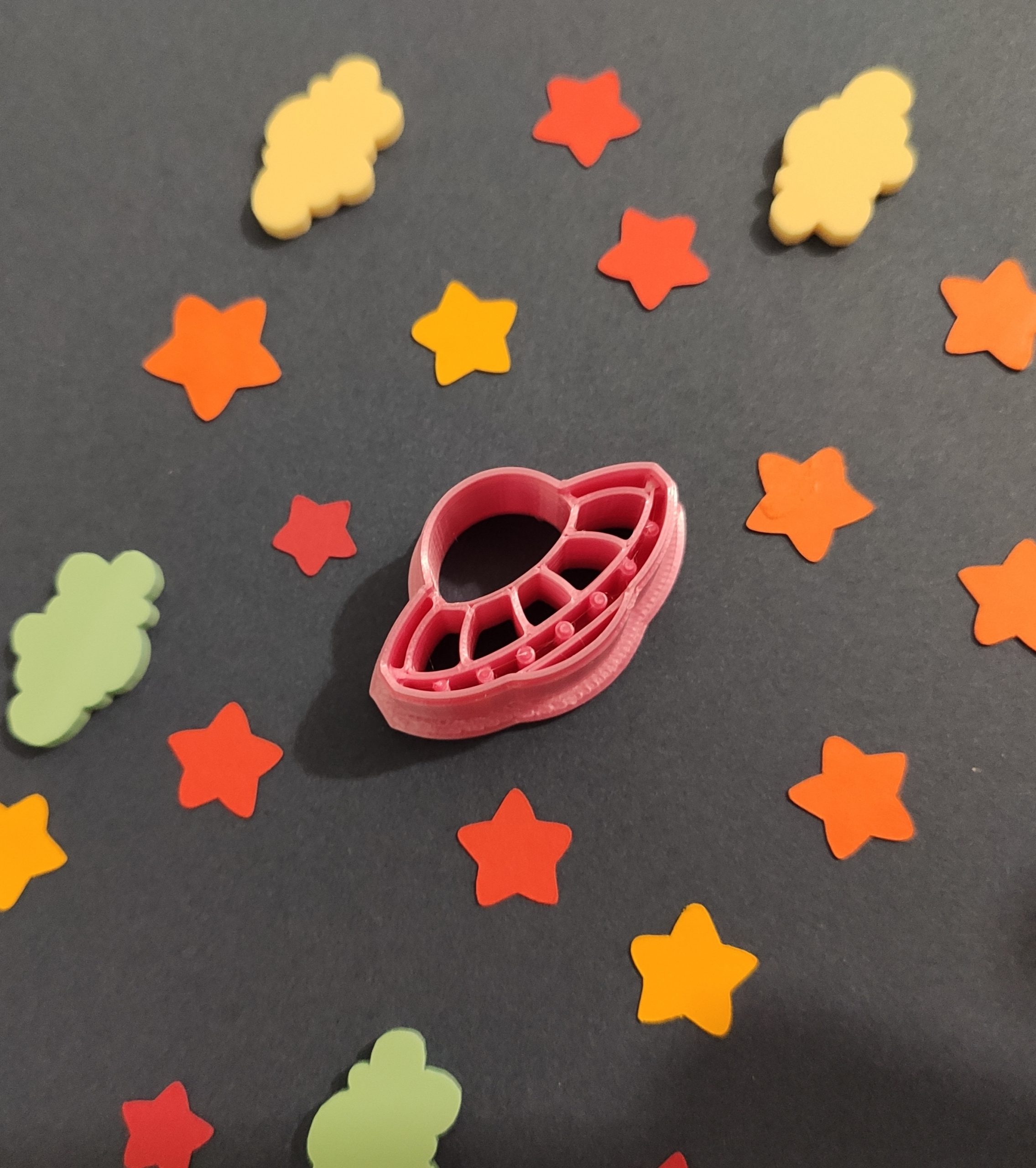 Cortador de arcilla polimérica en forma de ovni. Impreso en 3D. El color puede variar. El tamaño se refiere al alto del cortador.
