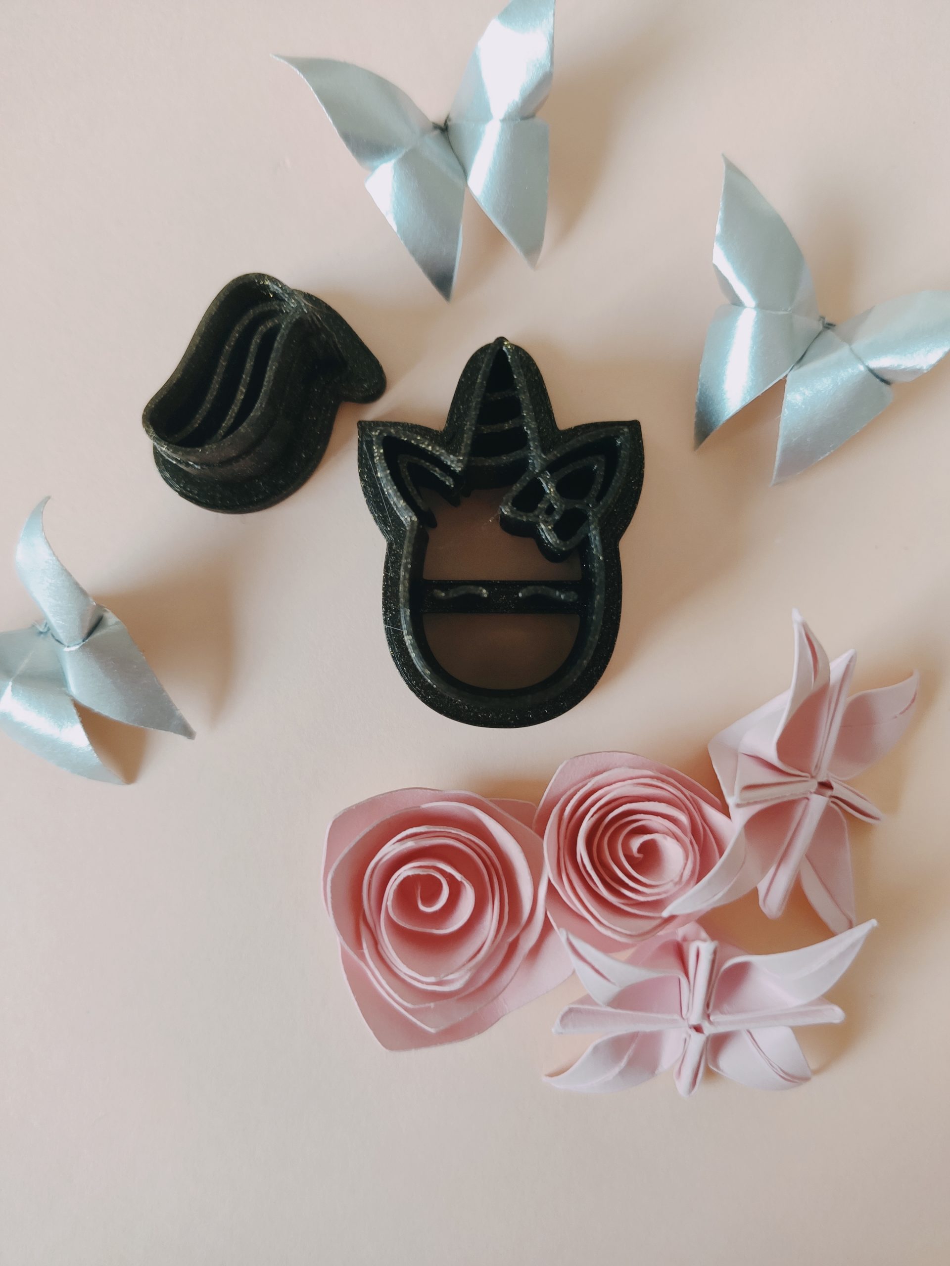 Cortador de arcilla polimérica en forma de unicornio (+ flequillo). Impreso en 3D. El color puede variar.