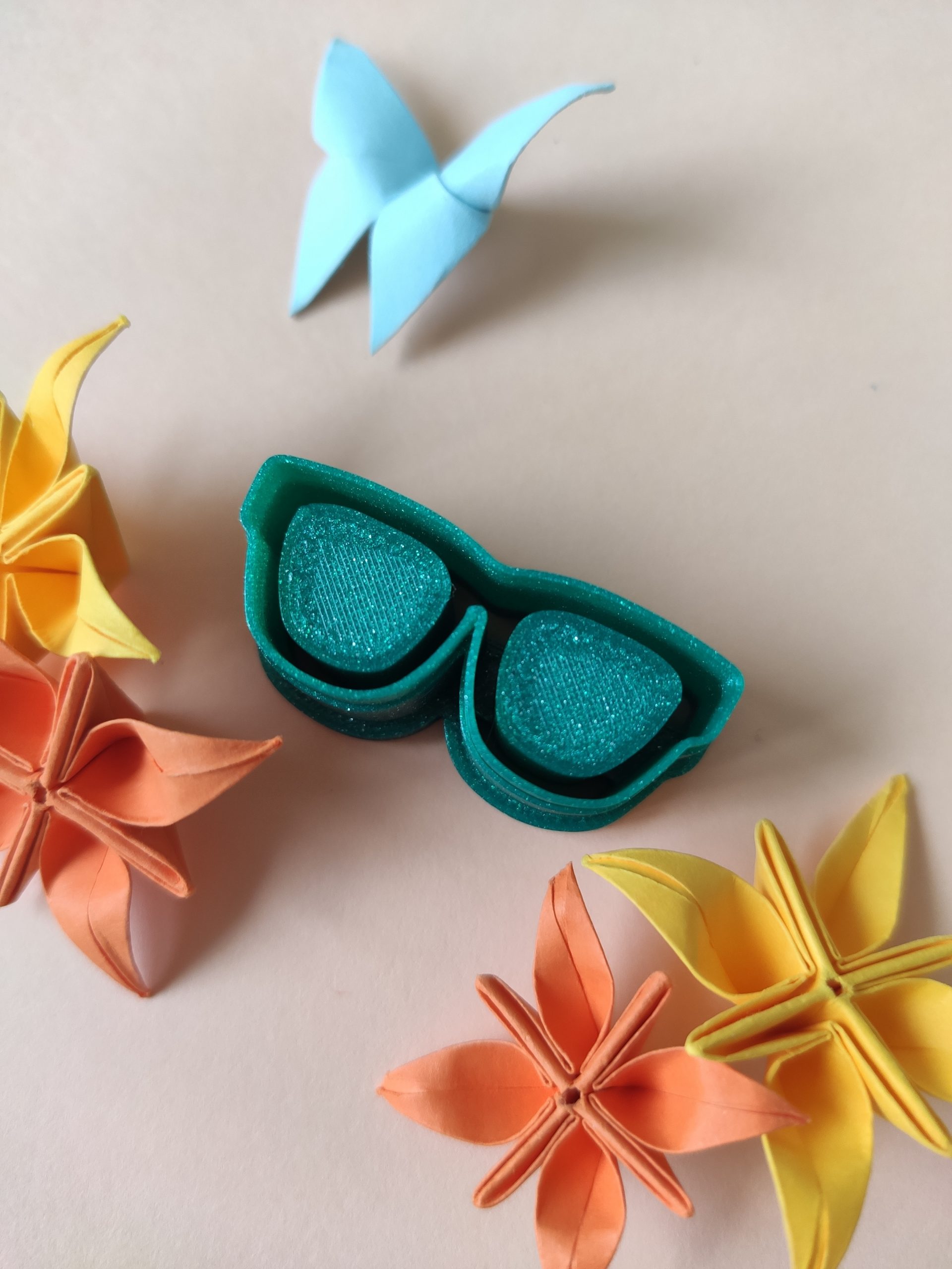 Cortador de arcilla polimérica en forma de gafas de sol. Impreso en 3D. El color puede variar.