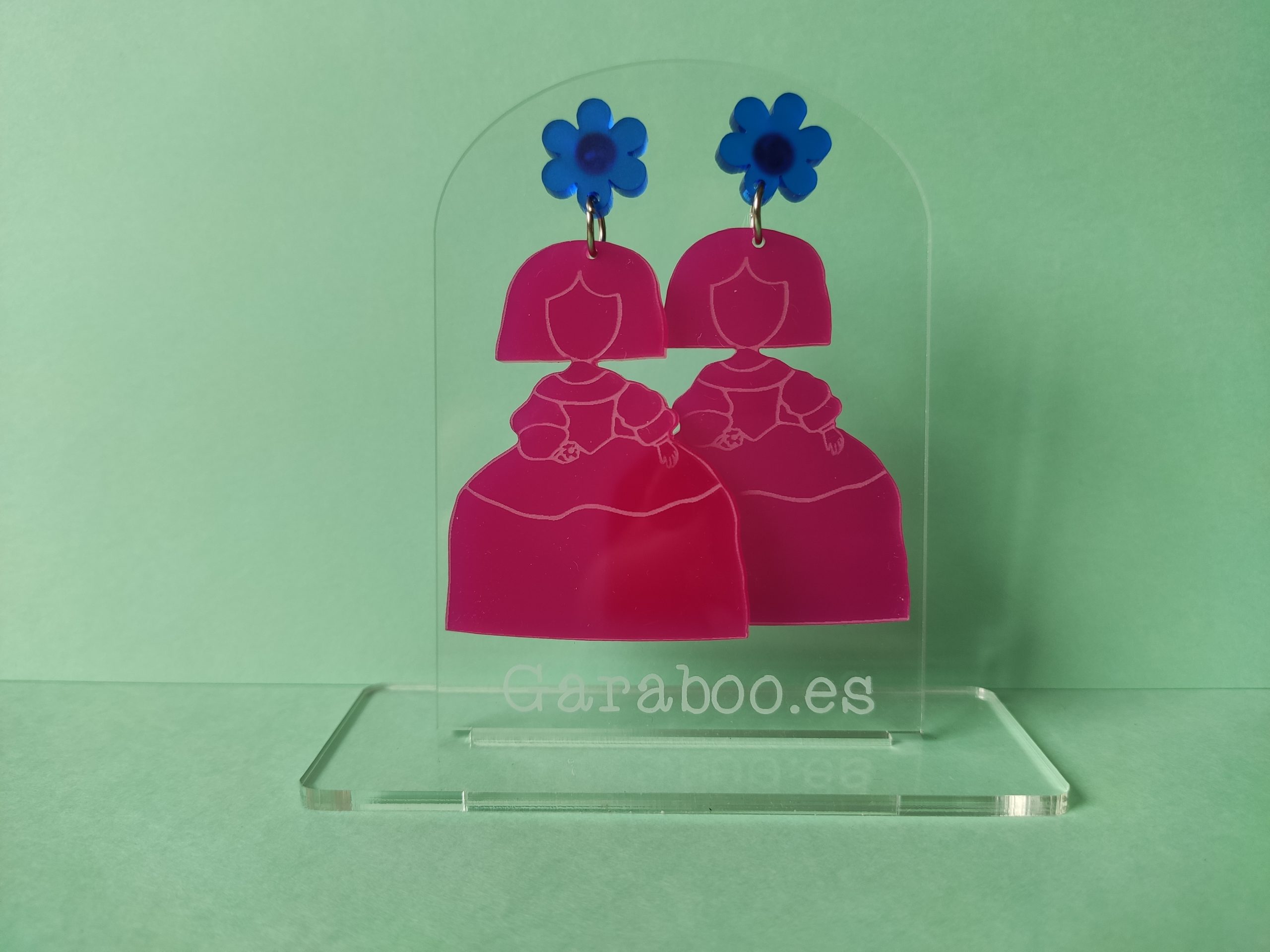 Expositor de pendientes con forma redondeada, realizado en metacrilato de 3mm de grosor.