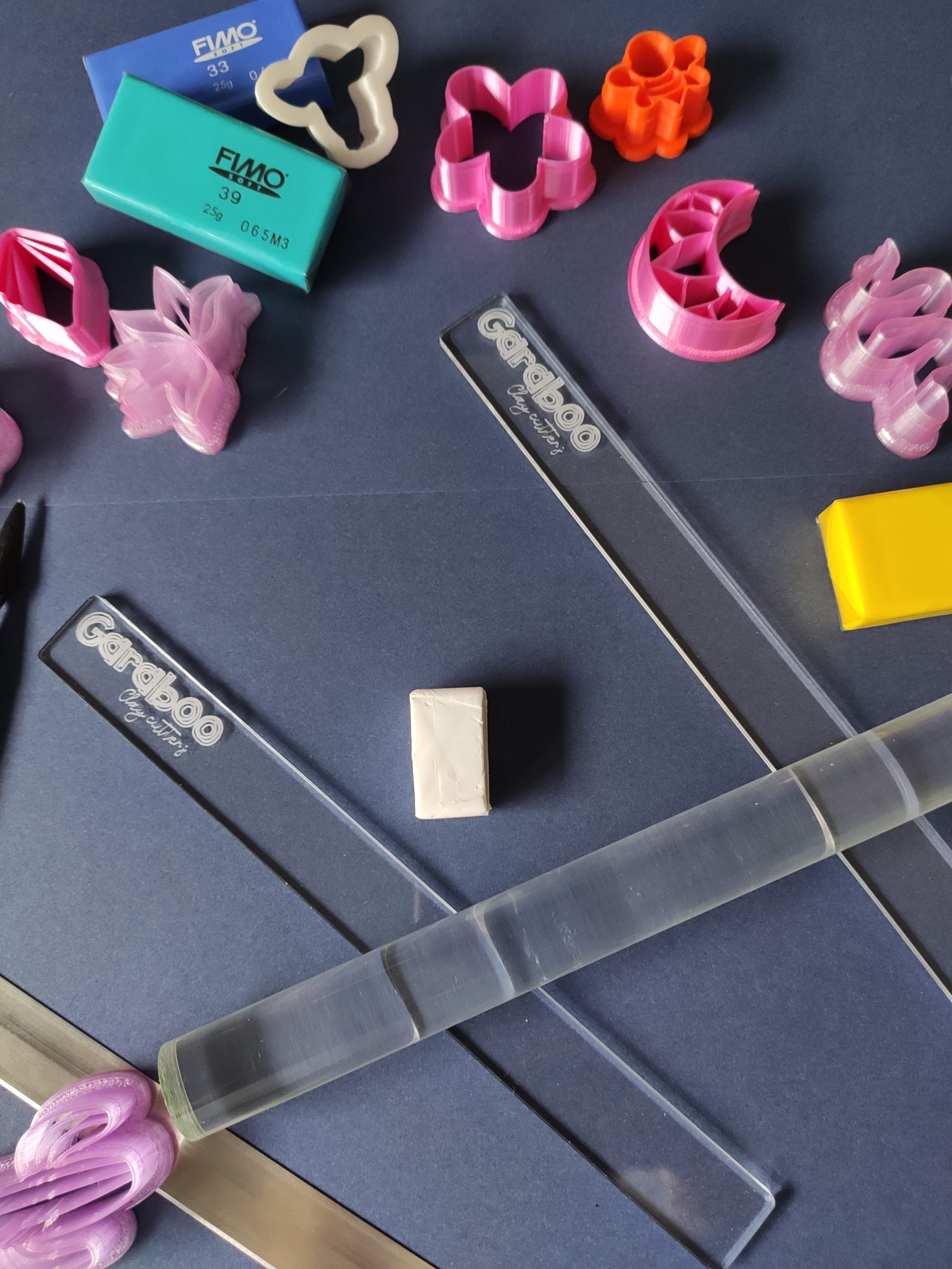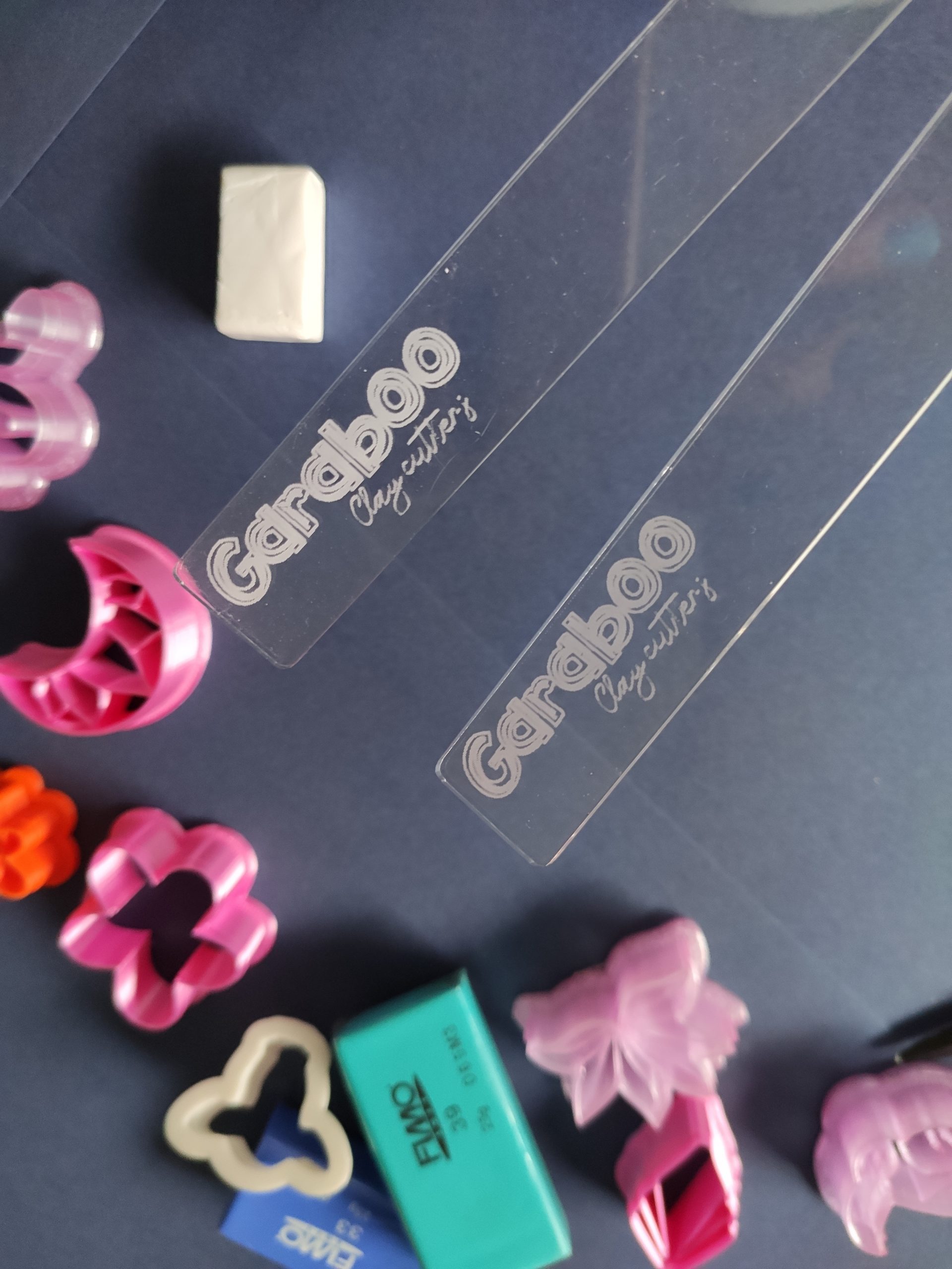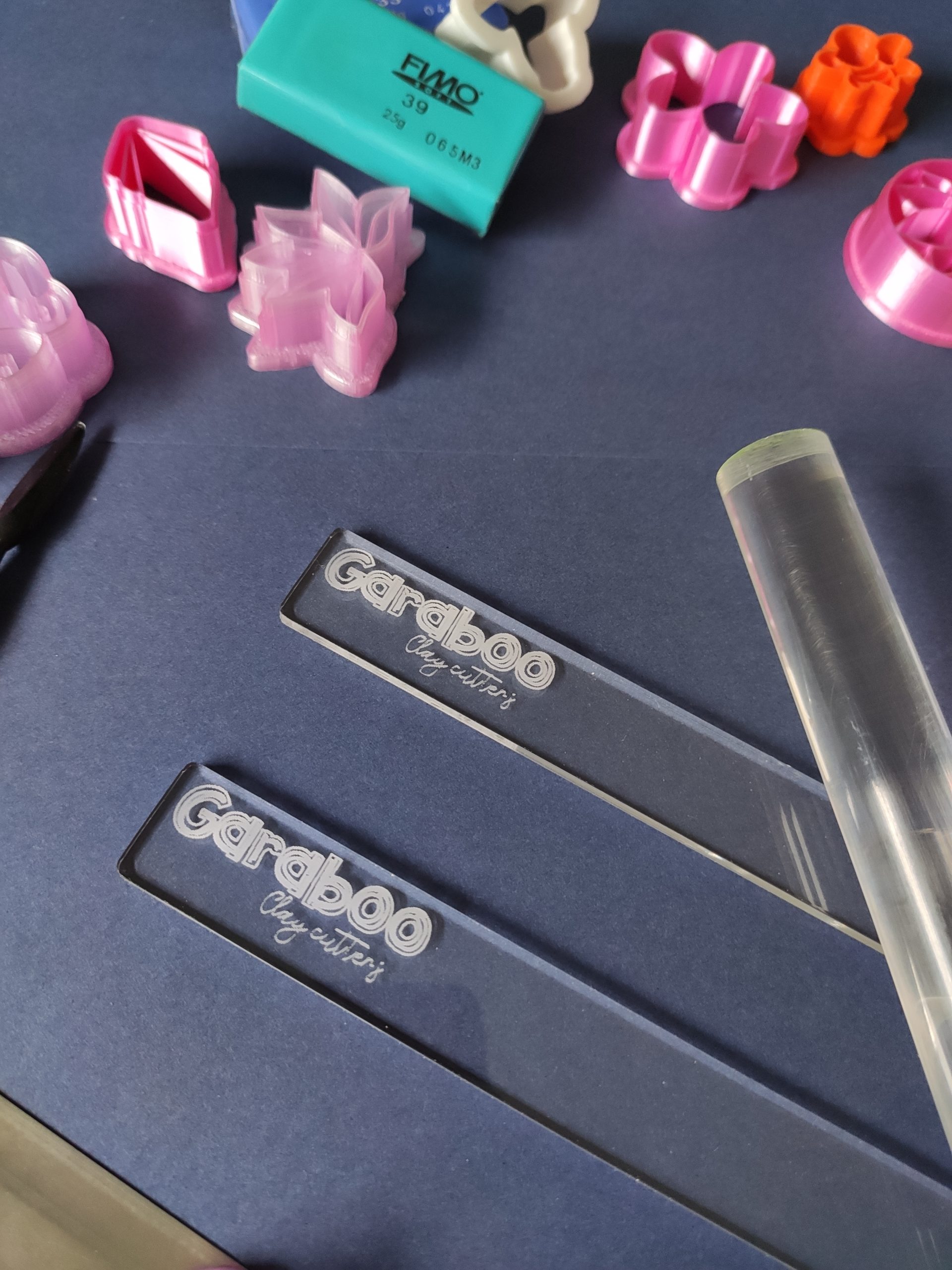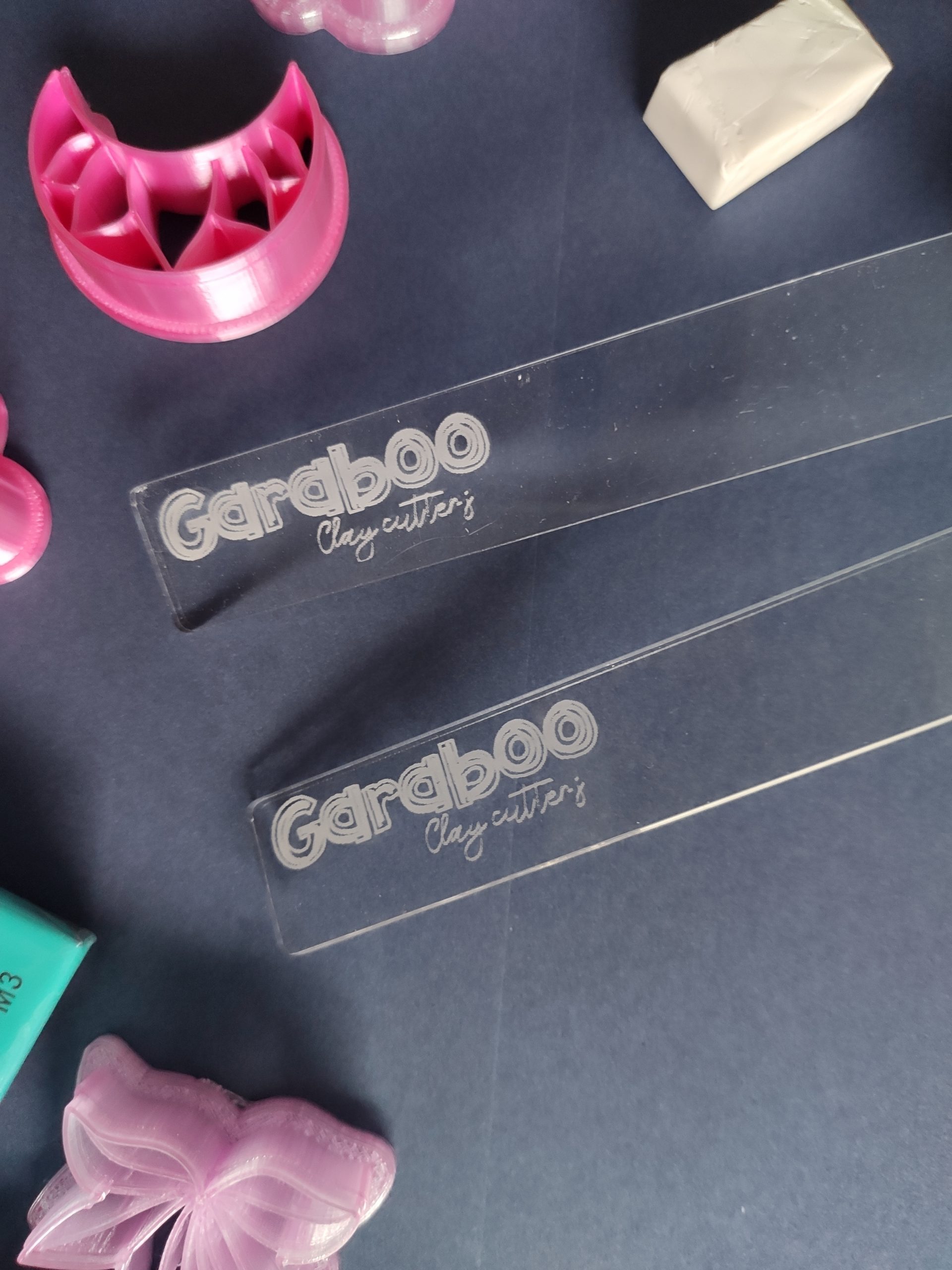 Guías de profundidad para trabajar la arcilla polimérica y que quede nivelada. Realizadas en metacrilato transparente de 3mm de grosor. 1 par.